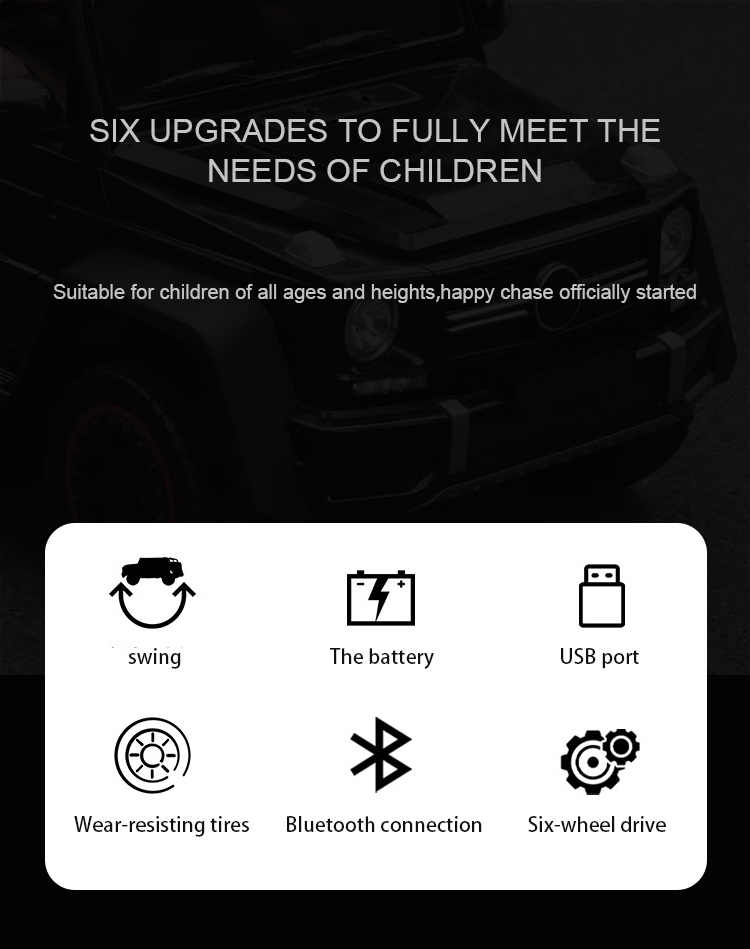 Type:Car, Style:Ride On Toy, Gender:Unisex, Age Range:2 to 4 Years, 5 to 7 years, 8 to 13 Years, Material:Plastic, Power:Battery or electricity, Plastic Type:ABS, Place of Origin:Hebei, China, Brand Name:LF, Model Number:WF189, Product name:Kids Electric Car, Age:3-13 Years, Battery:12V7, Motor:390motor/4, Packing:1PCS/CTN, Color:Black White, Size:139*79*64cm, Carton size:142*73.5*45cm, N.W:24.7kgs, G.W:30.5kgs, Packaging Details:1PC/Carton, Port:Tianjin